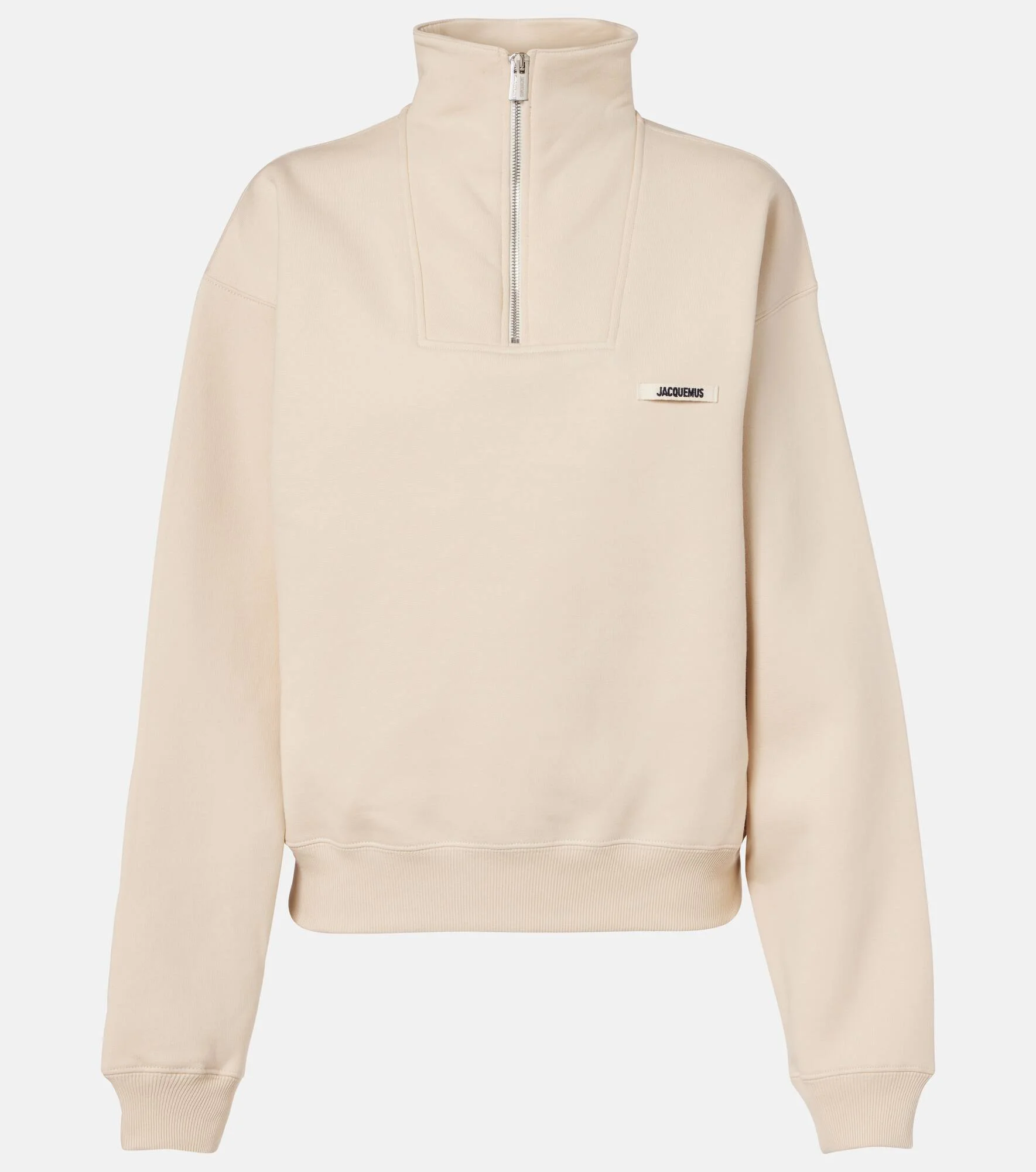 Jacquemus brings a characterful vision of French fashion to the design of every new collection. This sweatshirt is crafted from soft cotton jersey and boasts the house's signature logo. Product Details - Material: 100% cotton - Care instructions: machine wash at 30 degrees - Made in Portugal - Color: beige - Designer color name: Light Beige - Item color: beige - Collar: turtleneck - Closure: partially zipped front - Cuff: ribbed - Hem: ribbed - Item number: P01126366 Size & Fit - True to size - Dropped shoulders - Designed for a loose fit - Slightly stretchy fabric - Falls to the hip - The model seen in the picture is 178cm-5'10" and wearing a size XS