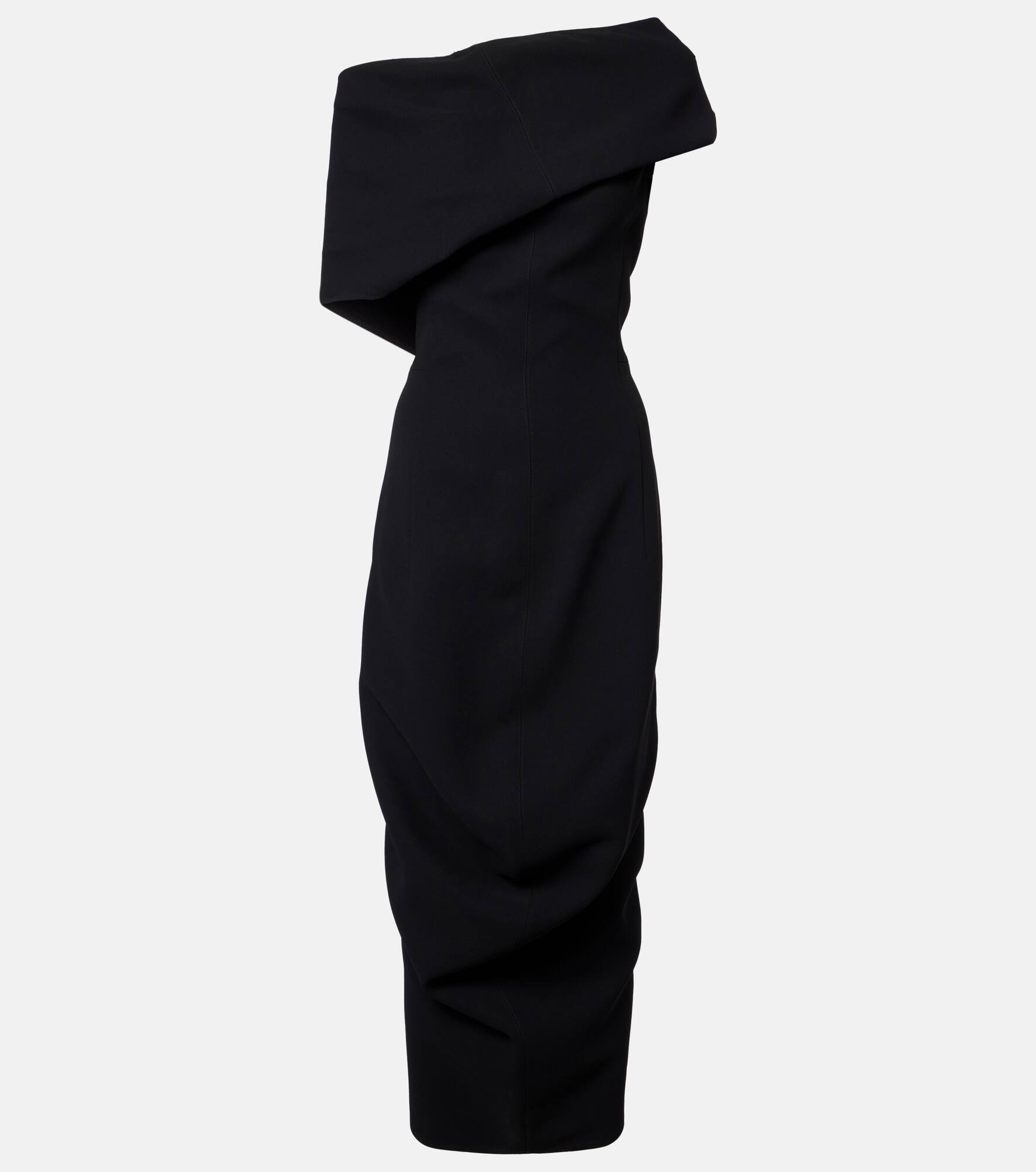 La Robe Pesce one-shoulder draped crepe midi dress Black
