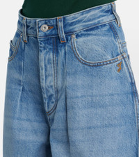 Jacquemus brings a characterful vision of French fashion to the design of every new collection. The Ovalo de-Nimes jeans have a high-rise, barrel-leg silhouette and a pleated waist. Product Details - Material: 100% cotton - Care instructions: machine wash at 30 degrees - Made in Italy - Designer color name: Blue/Tabac - Item color: blue - Lining: 65% polyester, 35% cotton - Hardware color: silver - Pockets: five pockets - Belt loops - Closure: concealed button placket - High-rise - Item number: P01077185 Size & Fit - True to size - Non-stretchy fabric - Tapered leg - High-rise - The model seen in the picture is 178cm-5'10" and wearing a size 26