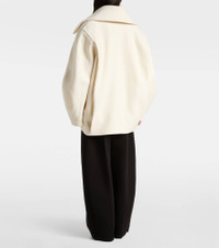 Jacquemus brings a characterful vision of French fashion to the design of every new collection. The Ovalo peacoat is crafted from virgin wool and features a double-breasted silhouette with wide lapels. Product Details - Material: 100% virgin wool - Care instructions: dry clean - Made in Bulgaria - Designer color name: Off-White - Item color: white - Lining: 52% viscose, 48% cotton - Pockets: welt pockets - Closure: double-breasted (six buttons) - Item number: P01075968 Size & Fit - Fits large to size - we recommend trying one size smaller - Oversized - Non-stretchy fabric - The model seen in the picture is 178cm-5'10" and wearing a size FR 32