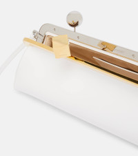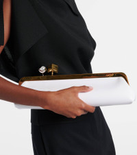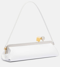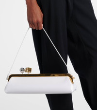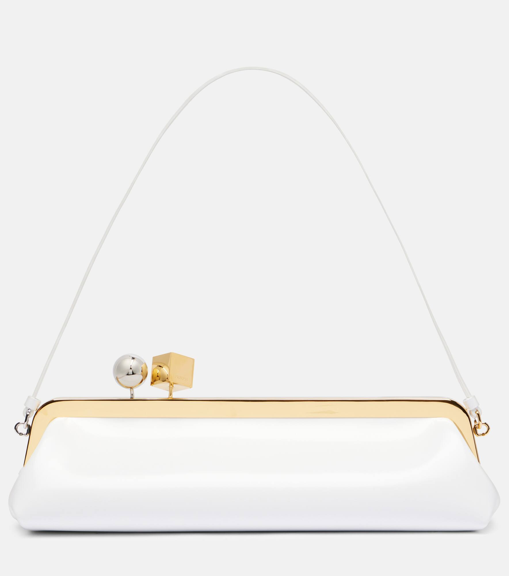 Jacquemus brings a characterful vision of French fashion to the design of every new collection. The Salon clutch is made from glazed leather and features Rond-Carre hardware and a removable shoulder strap. Product Details - Material: calf leather - Lining: cotton - Made in Italy - Designer color name: White - Item color: white - Hardware color: gold, silver - Leather shoulder strap - Closure: magnetic fastening - Internal details: internal slot pocket - Item number: P01056910 Size & Fit - Height 8,5cm-3.5" - Max. width 35cm-14" - Depth 11cm-4.5" - Length shoulder strap 66cm-26"