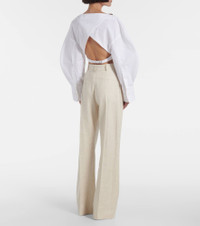 Product Details - Material: 70% viscose, 30% linen - Care instructions: dry clean - Made in Bulgaria - Designer color name: Light Beige - Pockets: side slit pockets, back pockets - Lining: 97% cotton, 3% elastane - Closure: zip, hook, and button fastening - Item number: P01021877 Size & Fit - True to size - Non-stretchy fabric - Wide-leg - High-waisted - The model seen in the picture is 178cm-5'10" and wearing a size FR 40