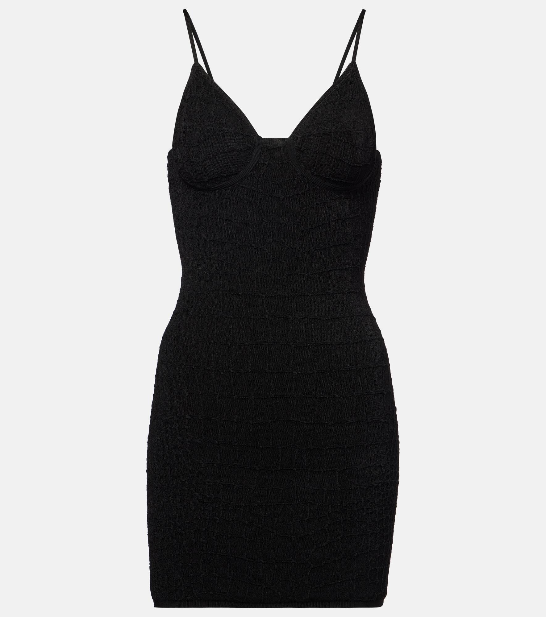 Designed to hug the figure tightly, Jacquemus' Scala minidress is made from a stretchy knit and boasts a subtle croc motif throughout. The style's slim, adjustable straps ensure the perfect fit. Product Details - Material: 57% viscose, 37% polyamide, 6% elastane - Care instructions: hand wash - Made in Portugal - Designer color name: Black - Item color: black - Item number: P01021882 Size & Fit - True to size - Fitted - Stretchy fabric - The model seen in the picture is 178cm-5'10" and wearing a size FR 34
