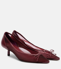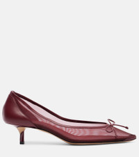 The Tourni pumps from Jacquemus are a captivating choice for your next event. Crafted from mesh, the pair features 45mm kitten heels and charming bows on the pointed-toed uppers. Product Details - Upper: fabric - Lining: fabric - Sole: leather insole and sole - Toe shape: pointed toe - Made in Italy - Includes: shoe box, dust bag - Designer color name: Burgundy - Item color: burgundy - Item number: P01086771 Size & Fit - True to size - Half sizes please take the next size down - European sizes - 4,5cm-2" heel (size EU 38)
