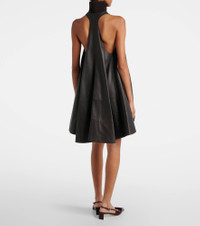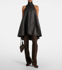 Jacquemus' Triangle minidress is crafted from leather with a turtleneck collar and partially zipped front. Designed with an uneven hem, side slit pockets, and partial lining, the style channels the brand’s bold, directional aesthetic. Product Details - Material: 100% lamb leather - Care instructions: specialist clean - Made in Italy - Designer color name: Dark Brown - Item color: brown - Lining: 52% viscose, 48% cotton - Collar: turtleneck - Closure: partially zipped front - Pockets: side slit pockets - Partially lined - Hem: uneven - Item number: P01077139 Size & Fit - True to size - Designed for a loose fit - Non-stretchy fabric - The model seen in the picture is 178cm-5'10" and wearing a size FR 34