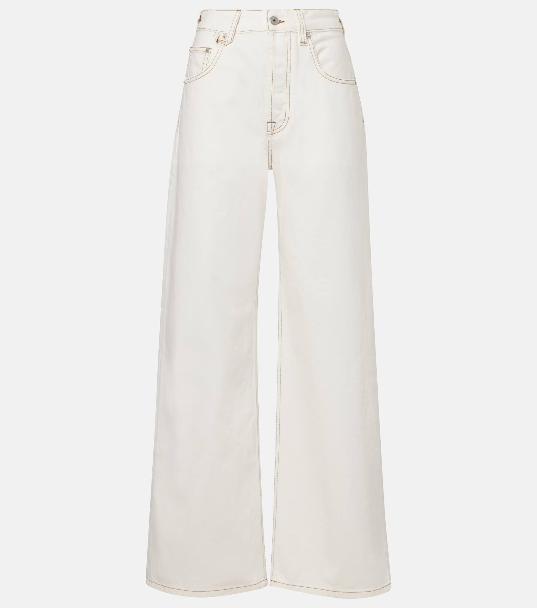 Jacquemus brings a characterful vision of French fashion to the design of every new collection. The Wide De-Nimes jeans feature a wide-leg silhouette with a high-rise waist and contrasting stitching. Product Details - Material: 100% cotton - Care instructions: machine wash at 30 degrees - Made in Italy - Designer color name: Off-White/Tabac - Item color: white - Lining: 65% polyester, 35% cotton - Closure: concealed button placket - Pockets: five pockets - Belt loops - Item number: P01077350 Size & Fit - True to size - Non-stretchy fabric - Wide-leg - High-rise - The model seen in the picture is 178cm-5'10" and wearing a size 26