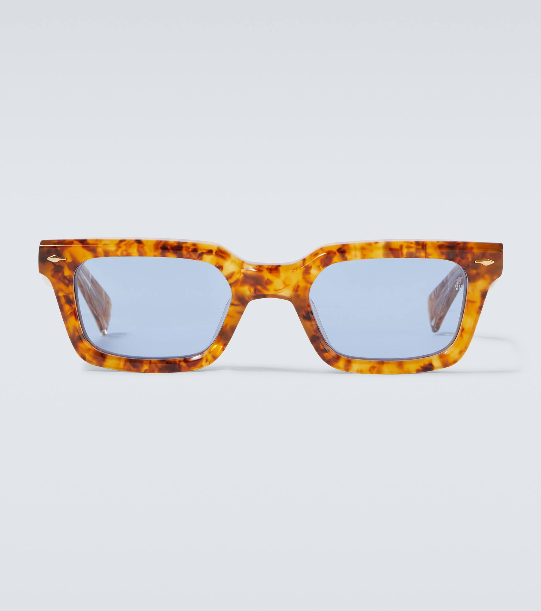 Drawing inspiration from an eclectic mix of art movements, Jacques Marie Mage crafts eyewear that serve as collectible objet d'arts. The Casablanca rectangular sunglasses feature a tortoiseshell frame with light blue hued lenses. Product Details - Frame material: acetate - Frame color: light brown - Lens filter category 2 - Lens color: light blue - Made in Japan - Includes: cleaning cloth, case - The color of the case may vary - Item number: P01082580 Size & Fit - Lens width: 49mm-1.95" - Bridge size: 23mm-0.9" - Earpiece length: 145mm-5.7"
