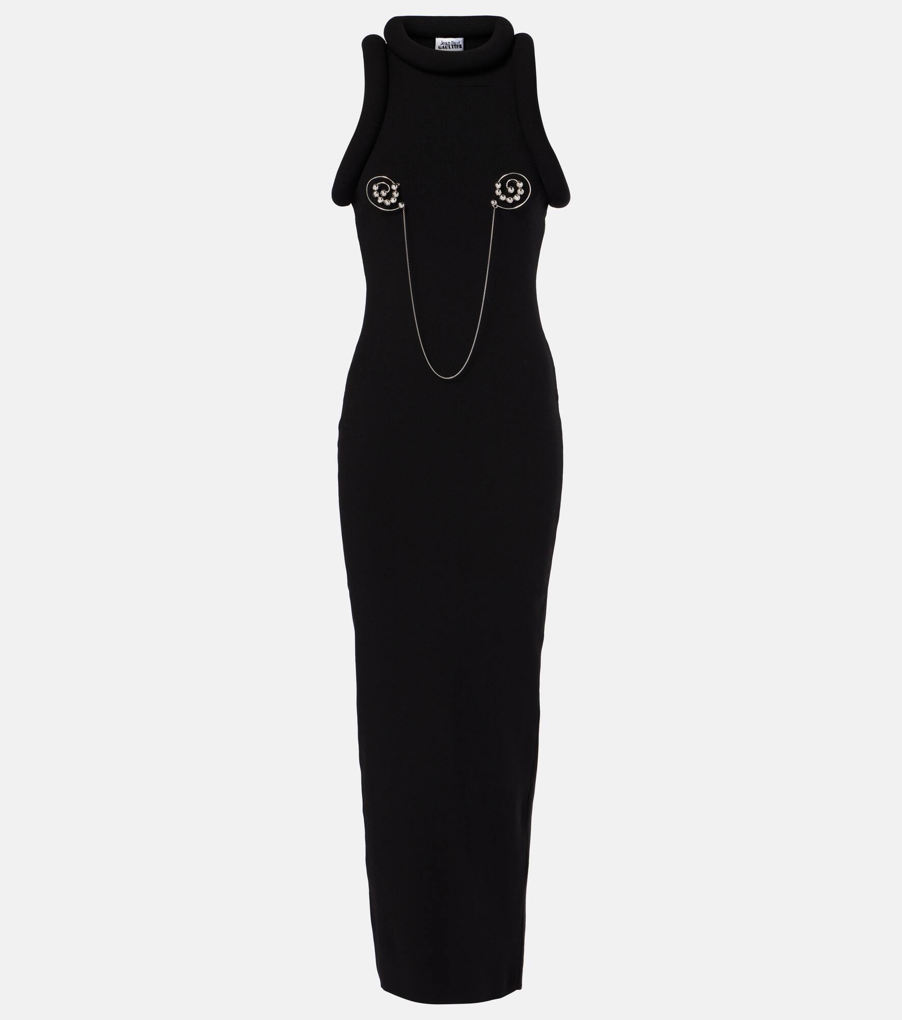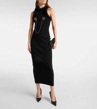 Product Details - Material: 64% viscose, 28% polyester, 7% polyamide, 1% elastane - Care instructions: hand wash - Made in Italy - Designer color name: Black - Material II: 100% polyurethane - Details: 99% brass, 1% glass - Item number: P00966184 Size & Fit - True to size - Fitted - Stretchy fabric - The model seen in the picture is 178cm-5'10" and wearing a size XS
