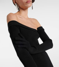 Product Details - Material: 66% viscose, 28% polyester, 5% polyamide, 1% elastane - Care instructions: hand wash - Made in Italy - Cuff: buttoned - Item number: P00939466 Size & Fit - True to size - Off-the-shoulder - Fitted - Stretchy fabric - The model seen in the picture is 178cm-5'10" and wearing a size XS