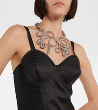 Arriving in a label-signature silhouette, this corseted minidress from Jean Paul Gaultier is defined by its iconic cone bra top and topstitched accents. The style boasts a lace-up back and elegant paneling. Product Details - Care instructions: machine wash at 30 degrees - Made in the UK - Material II: 31% elastane, 69% polyamide - Designer color name: Black - Material: 97% polyester, 3% elastane - Closure: invisible zipper - Item number: P00823904 Size & Fit - True to size - Ideal fit for larger bust sizes - Fitted - Mid-weight material - Padded top - The model seen in the picture is 178cm-5'10" and wearing a size FR 36