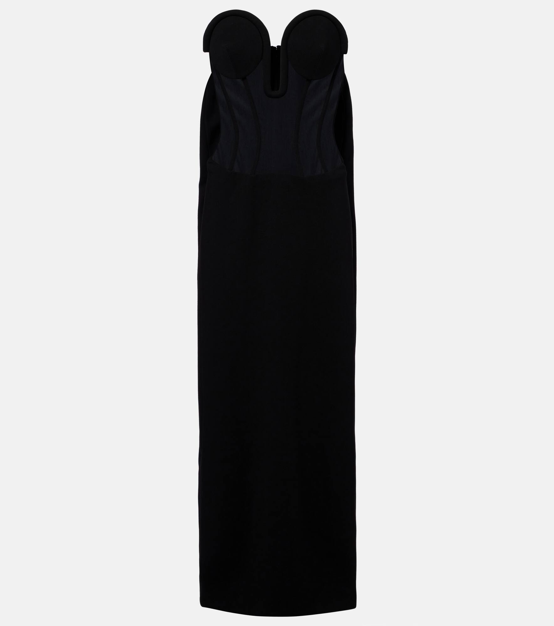 Sophisticated and captivating, this maxi dress from Jean Paul Gaultier is primed for your special occasions collection. Made from crepe and tulle, this style features an exquisite corset and is completed with a slit at the back. Product Details - Material: 78% viscose, 16% polyamide, 6% elastane - Care instructions: dry clean - Made in Italy - Designer color name: Black - Item color: black - Lining: 69% polyamide, 31% elastane - Closure: invisible zipper, hook fastening - Item number: P01004453 Size & Fit - True to size - Strapless - Semi-sheer - Cinched waist - Partly stretchy fabric - slit length 62cm-24.5" - The model seen in the picture is 178cm-5'10" and wearing a size FR 36