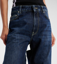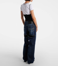 Dubbed fashion's “enfant terrible”, Jean Paul Gaultier hails the renaissance of vintage style codes through pop culture-inspired designs. Designed with a high-rise waistline, these wide-leg jeans stand out with their cutouts at the back. Product Details - Material: 100% cotton (organic) - Care instructions: machine wash at 30 degrees - Made in Italy - Designer color name: Dark Vintage Blue - Item color: blue - Hardware color: silver - Pocket lining: 65% polyester, 35% cotton - Closure: zip and button fastening - Pockets: five pockets - Belt loops - Item number: P01099104 Size & Fit - True to size - Non-stretchy fabric - Wide-leg - High-rise - The model seen in the picture is 178cm-5'10" and wearing a size 26