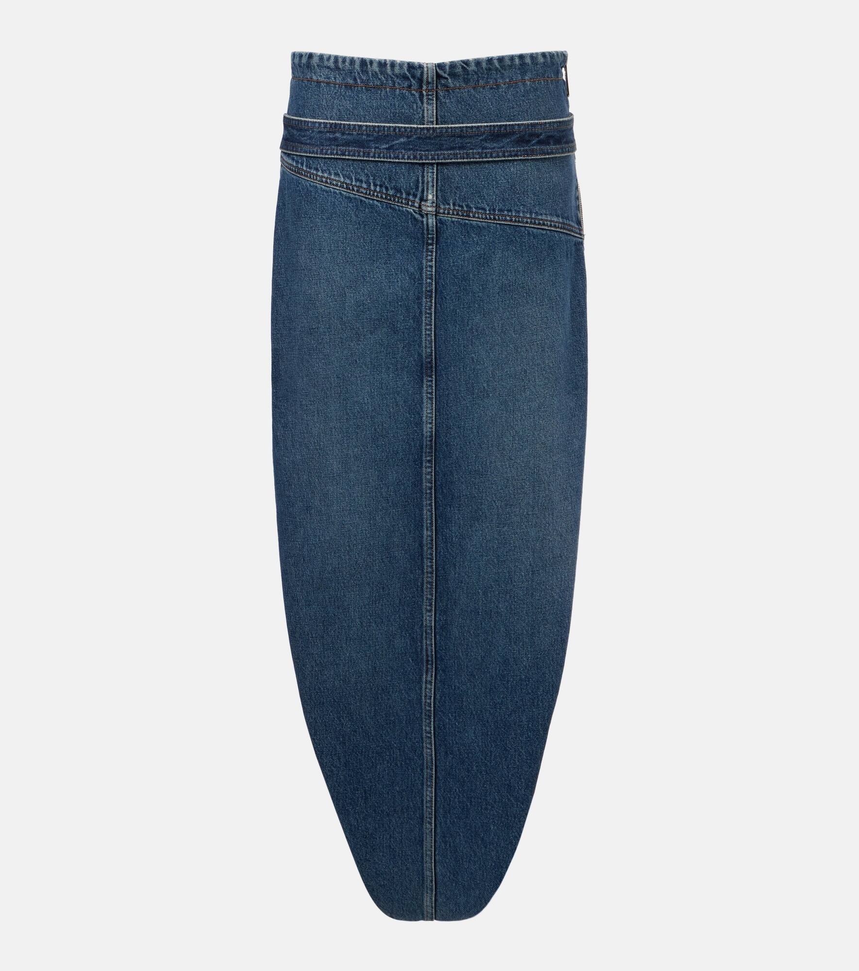 This asymmetric midi skirt is crafted from denim with directional lines. Dubbed fashion's “enfant terrible”, Jean Paul Gaultier hails the renaissance of vintage style codes through pop culture-inspired designs. Product Details - Material: 100% cotton - Care instructions: machine wash at 30 degrees - Made in Italy - Designer color name: Vintage Blue - Item color: blue - Closure: zipped side - Attached belt - Side slits - Pockets: patch pockets - Item number: P01072587 Size & Fit - True to size - Non-stretchy fabric - Low-rise - The model seen in the picture is 178cm-5'10" and wearing a size FR 36