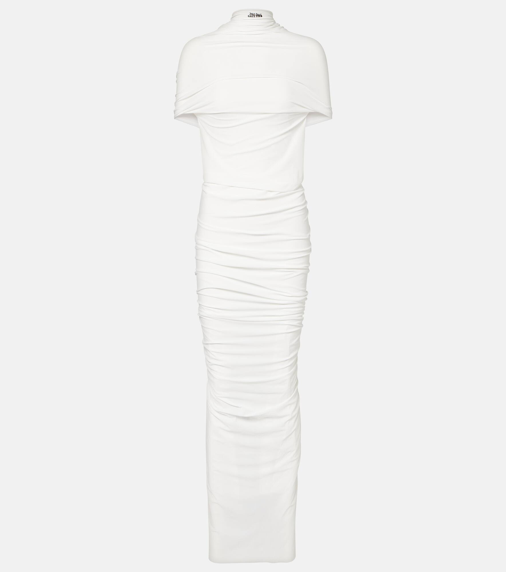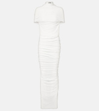 Fringed ruched jersey maxi dress