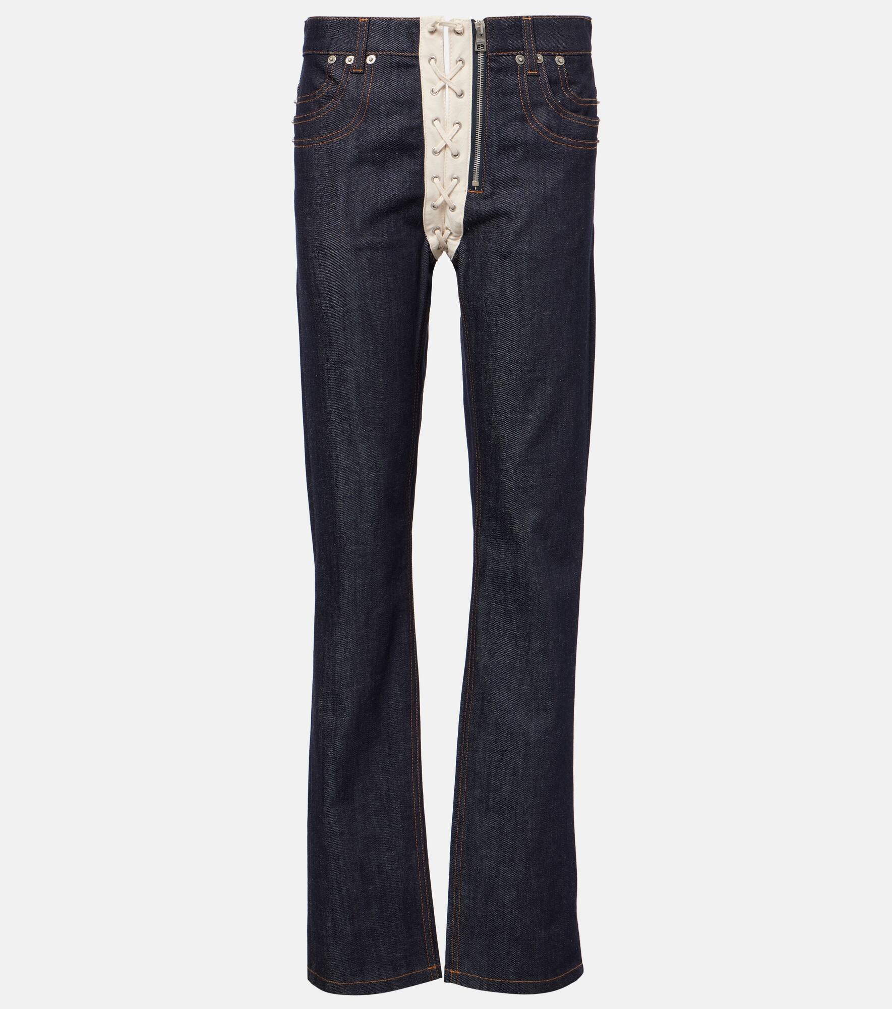 Product Details - Material: 98% cotton, 2% elastane - Care instructions: machine wash at 30 degrees - Made in Italy - Designer color name: Indigo/Beige - Closure: zipper fastening - Pockets: side slit pockets, back pockets - Material II: 100% cotton - Lining: 100% cotton - Item number: P01004445 Size & Fit - Fits small to size - we recommend trying one size larger - Non-stretchy fabric - Straight leg - Mid-rise - The model seen in the picture is 178cm-5'10" and wearing a size 27