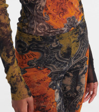 Dubbed fashion's “enfant terrible”, Jean Paul Gaultier hails the renaissance of vintage style codes through pop culture-inspired designs. The Medaillon midi skirt is shaped from semi-sheer mesh into a form-fitting silhouette, featuring an allover abstract print. Product Details - Material: 100% polyamide - Care instructions: dry clean - Made in Italy - Designer color name: Black/Khaki/Orange - Item color: black, green, orange - Lining: 100% polyamide - Elasticated waistband - Item number: P01072571 Size & Fit - True to size - Semi-sheer - Elasticated waist - Stretchy fabric - Slim-leg - The model seen in the picture is 178cm-5'10" and wearing a size XS
