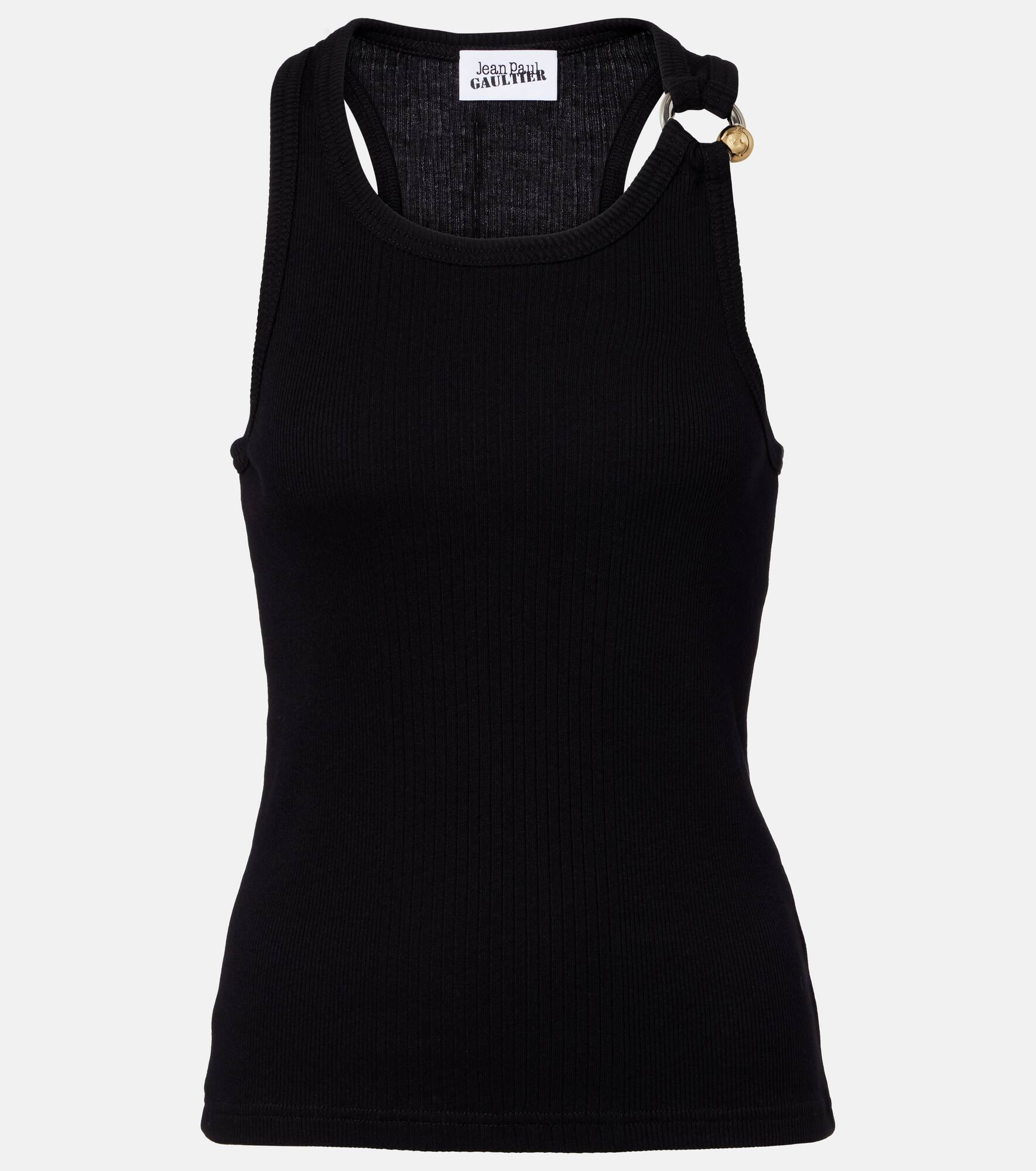 Dubbed fashion's “enfant terrible”, Jean Paul Gaultier hails the renaissance of vintage style codes through pop culture-inspired designs. The Piercing tank top is crafted from cotton jersey and finished with a jewelry-inspired detail. Product Details - Material: 100% cotton - Care instructions: machine wash at 30 degrees - Made in Bulgaria - Designer color name: Black - Item color: black - Hardware color: silver - Item number: P01072659 Size & Fit - True to size - Cinched waist - Stretchy fabric - Falls to the hip - The model seen in the picture is 178cm-5'10" and wearing a size XS