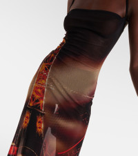Printed mesh slip dress
