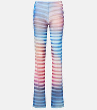Printed striped mesh flared pants