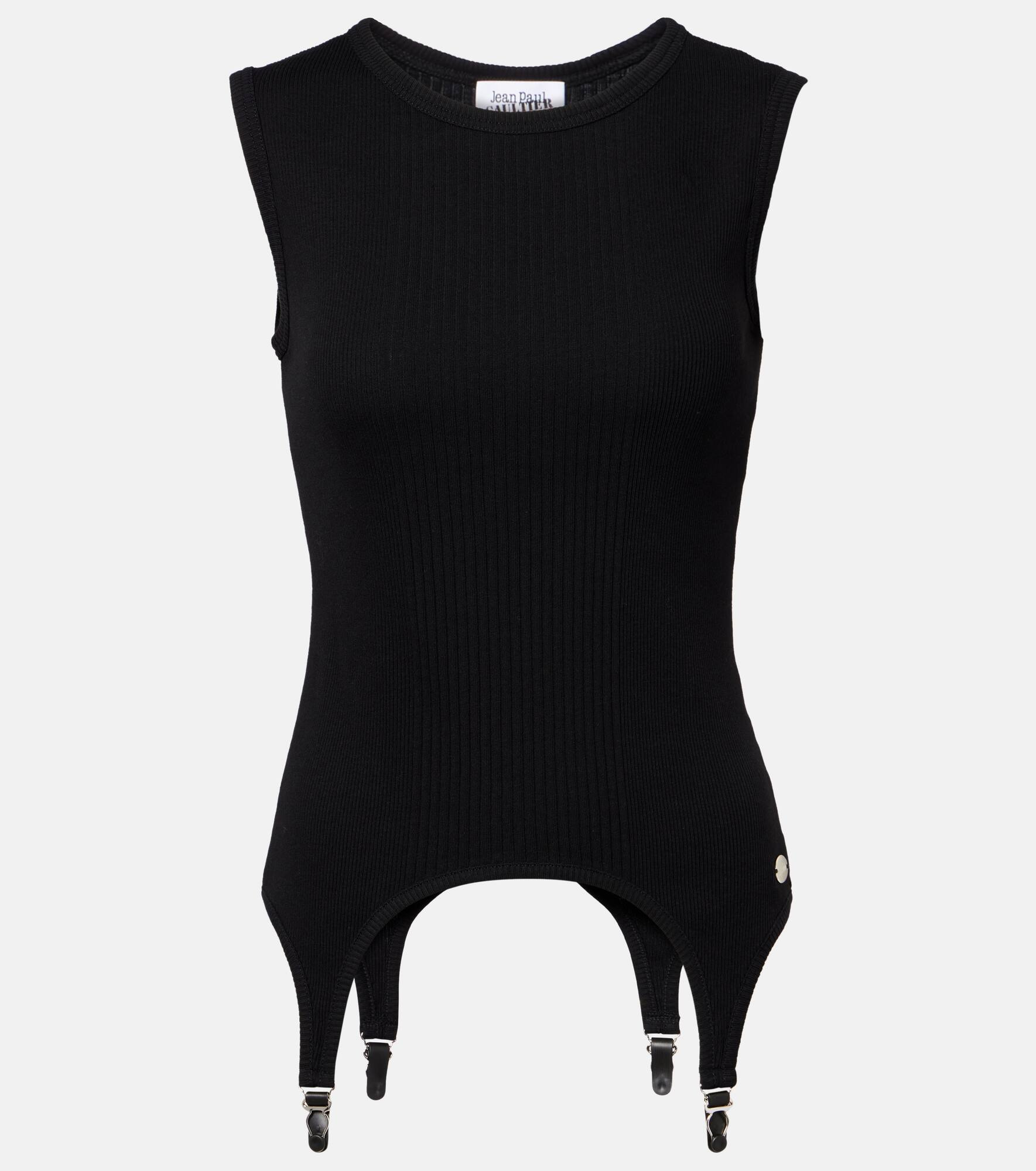 Dubbed fashion's “enfant terrible”, Jean Paul Gaultier hails the renaissance of vintage style codes through pop culture-inspired designs. Made from cotton jersey, this tank top is a ribbed-knit piece with suspender-inspired details at the hemline. Product Details - Material: 100% cotton - Care instructions: machine wash at 30 degrees - Made in Bulgaria - Designer color name: Black - Item color: black - Hardware color: silver - Item number: P01099111 Size & Fit - True to size - Fitted - Stretchy fabric - Falls to the hip - The model seen in the picture is 178cm-5'10" and wearing a size XS