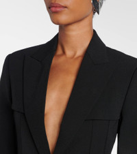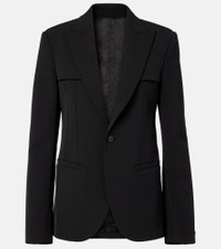 Dubbed fashion's “enfant terrible”, Jean Paul Gaultier hails the renaissance of vintage style codes through pop culture-inspired designs. The fully-lined single-breasted blazer has shoulder pads and jetted pockets. Product Details - Material: 94% polyamide, 6% elastane - Care instructions: dry clean - Made in Italy - Designer color name: Black - Item color: black - Lining: 100% viscose - Peak lapel - Shoulder pads - Closure: single-breasted (one button) - Pockets: jetted - Cuff: buttoned - Vent: double - Fully lined - Item number: P01072589 Size & Fit - True to size - Shoulder pad inserts - Cinched waist - Non-stretchy fabric - Falls below the hip - slit length 22cm-8.5" - Height of model is 178cm-70" and wears a size FR 36