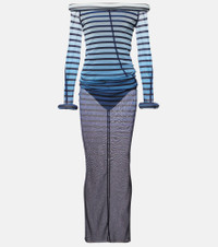 Striped semi-sheer tulle maxi dress