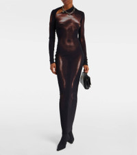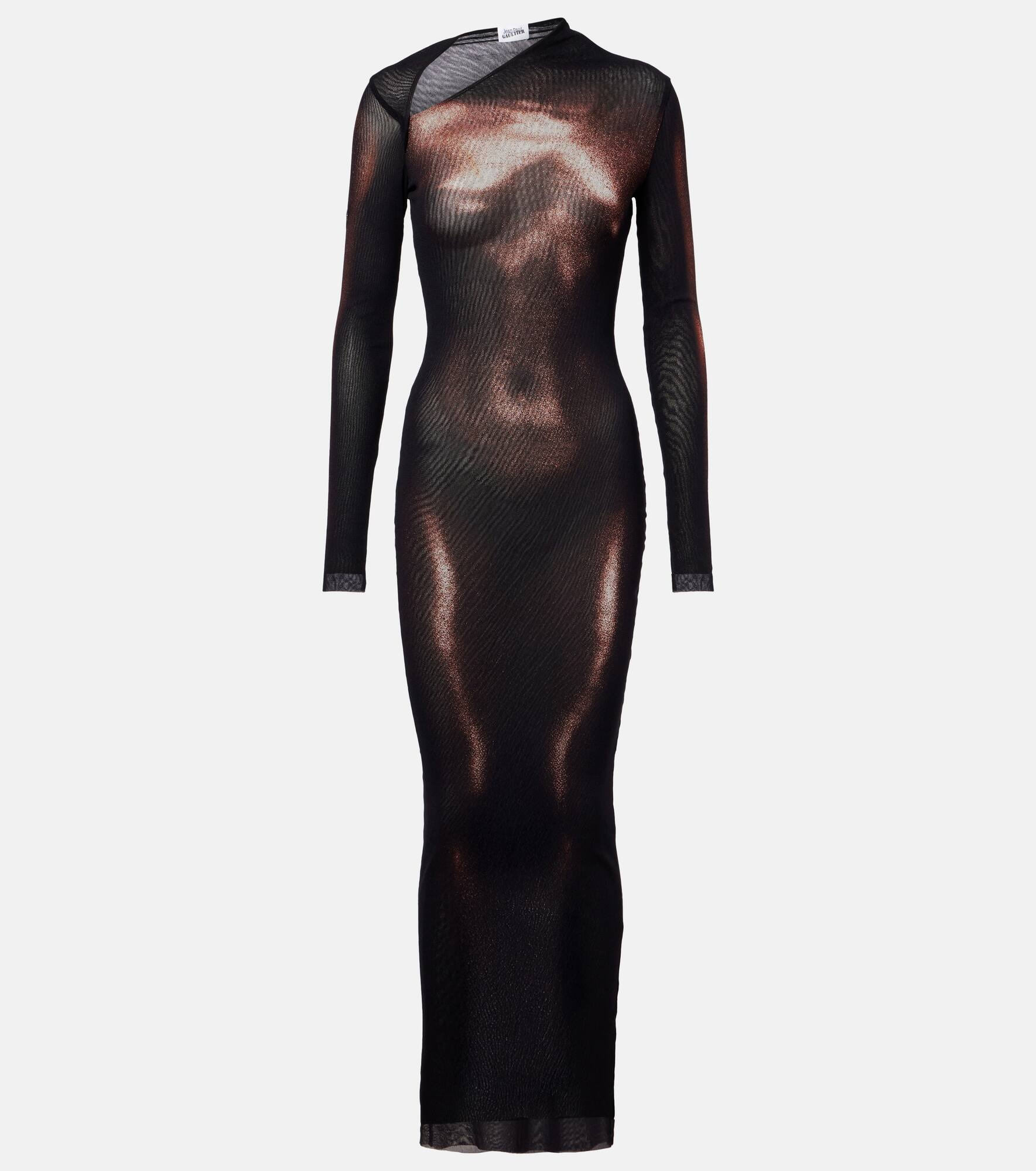 Dubbed fashion's “enfant terrible”, Jean Paul Gaultier hails the renaissance of vintage style codes through pop culture-inspired designs. Made from mesh, this maxi dress is characterized by its trompe l'oeil body-inspired print. Product Details - Material: 100% polyamide - Care instructions: hand wash - Made in Italy - Designer color name: Black/Brown - Item color: black, brown - Lining: 100% polyamide - Item number: P01099100 Size & Fit - True to size - Semi-sheer - Fitted - Stretchy fabric - The model seen in the picture is 178cm-5'10" and wearing a size XS