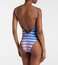 Dubbed fashion's “enfant terrible”, Jean Paul Gaultier hails the renaissance of vintage style codes through pop culture-inspired designs. This swimsuit features a trompe l’oeil print and classic scoop neckline. Product Details - Material: 83% polyester, 17% elastane - Care instructions: machine wash at 30 degrees - Made in Portugal - Designer color name: Light Blue/Blue/Peach - Item color: blue, pink - Lining: 90% polyamide, 10% polyester - Item number: P01072631 Size & Fit - True to size - Unpadded Top - Medium-cut leg - The model seen in the picture is 178cm-5'10", cup size B, and wearing a size XS