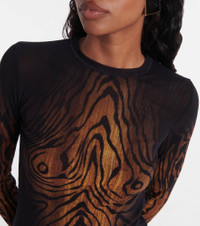 Dubbed fashion's “enfant terrible”, Jean Paul Gaultier hails the renaissance of vintage style codes through pop culture-inspired designs. This long-sleeved top is made from tulle and showcases the brand's trompe l'œil Wood print. Product Details - Material: 100% polyamide - Care instructions: dry clean - Made in Italy - Designer color name: Black/Brown - Item color: black, brown - Lining: 100% polyamide - Collar: crewneck - Sleeves: long-sleeved - Item number: P01072583 Size & Fit - True to size - Semi-sheer - Fitted - Stretchy fabric - Falls to the hip - The model seen in the picture is 178cm-5'10" and wearing a size XS