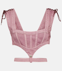 JEAN PAUL GAULTIER WOMEN Washed Laced Cropped Denim Corset-Style top L