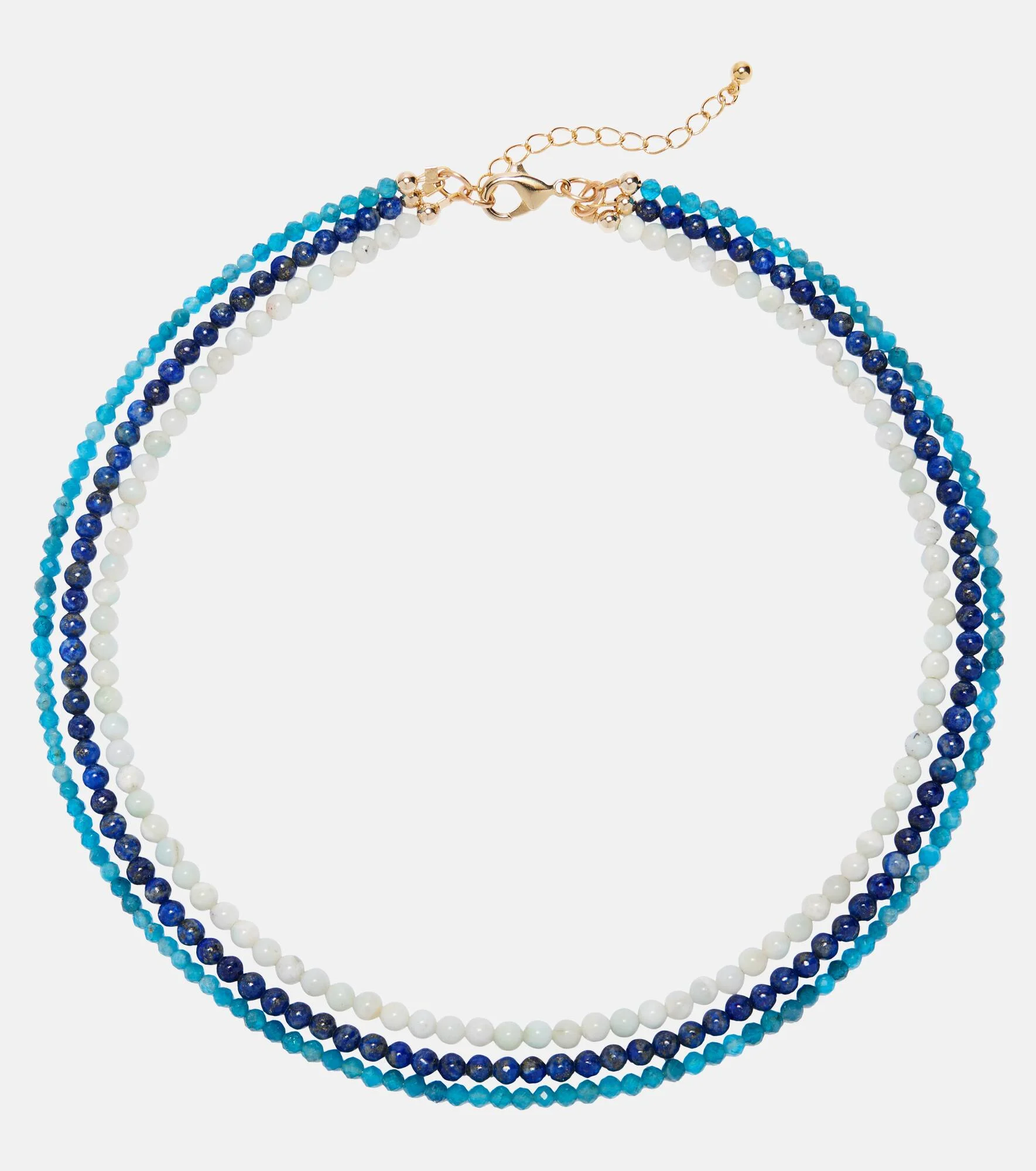 Sophistication and romance are the hallmarks of Jennifer Behr, whose accessories are made by hand in the label's New York City ateliers. Featuring an 18kt gold-plated lobster clasp, the Ersa necklace is a layered style enriched with semi-precious stones. Product Details - Material: 18kt gold-plated brass - Made in the USA - Item color: blue, multicolor - Closure: lobster-clasp fastening - Designer color name: Blue Multi - Includes: dust bag, box - Item number: P01122603 Size & Fit - Adjustable length - Length when open 41/46cm-16/18" - Width 0.4cm-0"