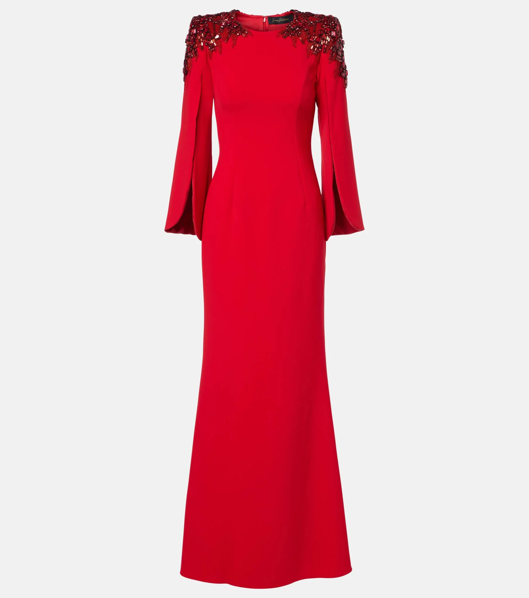 Enriched with romance, Jenny Packham’s intricately embellished designs are made to make an entrance. Complete with shimmering embellishments, the Adeline gown features shoulder pads for a structured look and a concealed zipper fastening at its back. Product Details - Material: 92% polyester, 8% polyurethane - Care instructions: dry clean - Made in China - Designer color name: Chilli Red - Item color: red - Lining: 100% polyester - Closure: concealed zipped back - Shoulder pads - Item number: P01117616 Size & Fit - True to size - Shoulder pad inserts - Fitted - Non-stretchy fabric - The model seen in the picture is 178cm-5'10" and wearing a size UK 8
