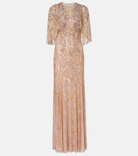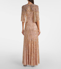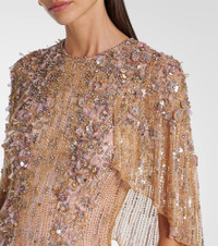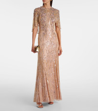 Enriched with romance, Jenny Packham’s designs are made to make an entrance. The Astra gown is a stunning piece with its sequin embellishment, and is shaped with cape sleeves and a floor-length skirt. Product Details - Material: 100% nylon - Care instructions: specialist clean - Made in India - Designer color name: Ballet Pink - Item color: pink - Lining: 100% polyester - Closure: zipped back - Fully lined - Item number: P01048273 Size & Fit - True to size - Cinched waist - Non-stretchy fabric - The model seen in the picture is 178cm-5'10" and wearing a size UK 8