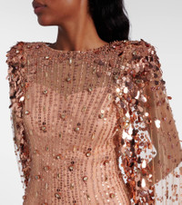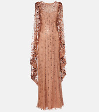 Enriched with romance, Jenny Packham’s intricately embellished designs are made to make an entrance. The Blaize gown captivates with its floor-length silhouette, graceful cape detail, and shimmering crystal embellishments. Product Details - Material: 100% nylon - Care instructions: dry clean - Made in India - Designer color name: Sable - Item color: pink - Lining: 98% polyester, 2% elastane - Shoulder pads - Closure: zipped back - Item number: P01077497 Size & Fit - True to size - Shoulder pad inserts - Low back - Fitted - Loose outer layer - Non-stretchy fabric - The model seen in the picture is 178cm-5'10" and wearing a size UK 8