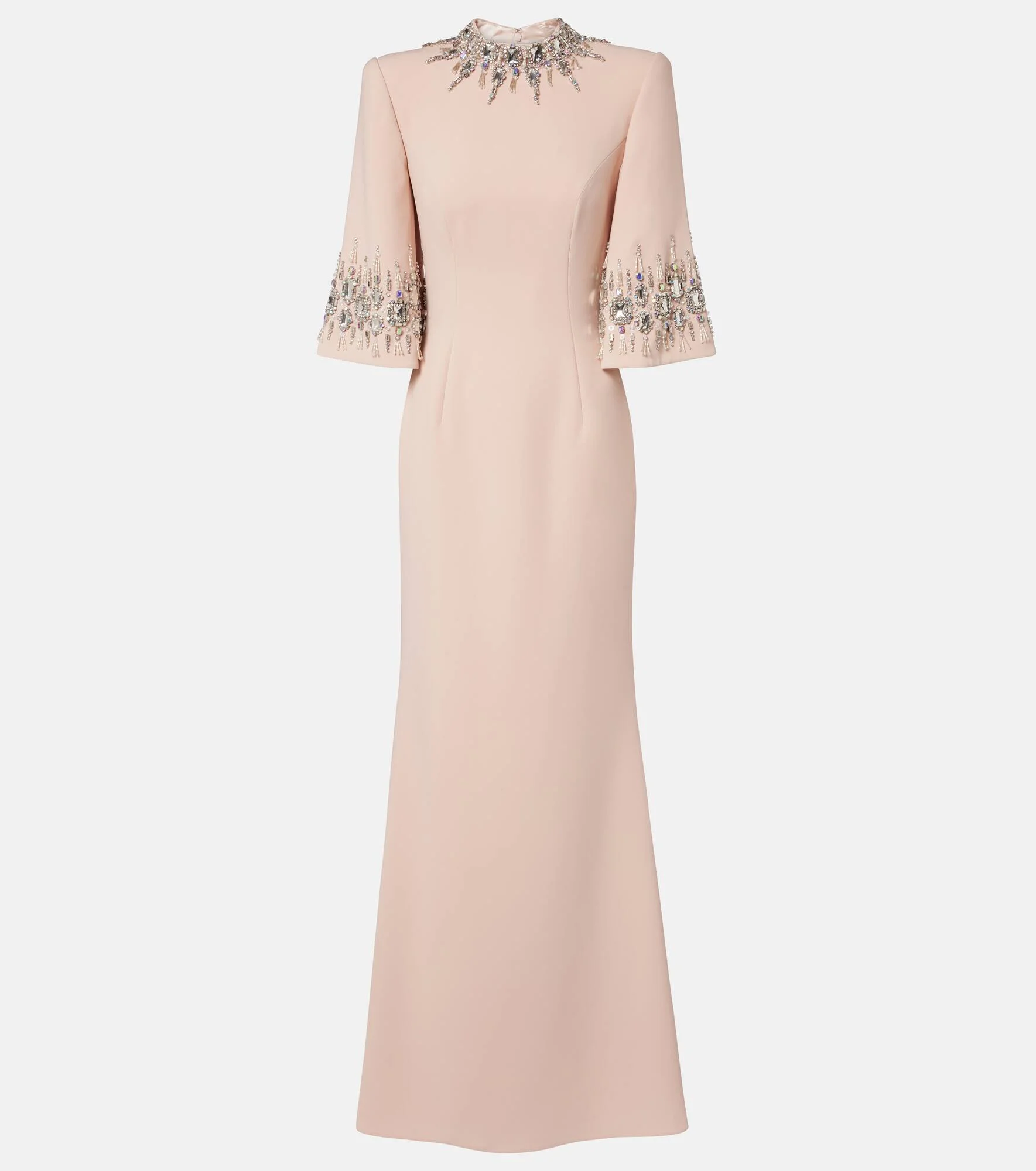 Enriched with romance, Jenny Packham’s intricately embellished designs are made to make an entrance. The Ilana gown stands out with a flattering floor-length silhouette and dazzling crystal detailing around the sleeves and neckline. Product Details - Material: 92% polyester, 8% polyurethane - Care instructions: dry clean - Made in China - Color: pink - Designer color name: Morganite - Closure: concealed zipped back - Lining: 100% polyester - Item number: P01124433 Size & Fit - True to size - Shoulder pad inserts - Cinched waist - Non-stretchy fabric - The model seen in the picture is 178cm-5'10" and wearing a size UK 8