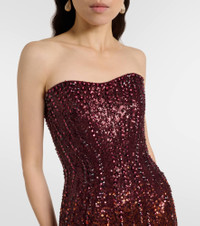 Enriched with romance, Jenny Packham’s intricately embellished designs are made to make an entrance. The Lior gown, encrusted with shimmering beads and sequins throughout, is shaped into a corseted, floor-sweeping silhouette. Product Details - Material: 100% nylon - Care instructions: dry clean - Made in India - Designer color name: Cardinal - Item color: red - Lining: 100% polyester - Boning - Closure: concealed zipped back - Item number: P01117588 Size & Fit - Fits large to size - we recommend trying one size smaller - Strapless - Internal boned corset for support - Fitted - Non-stretchy fabric - The model seen in the picture is 178cm-5'10" and wearing a size UK 6