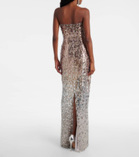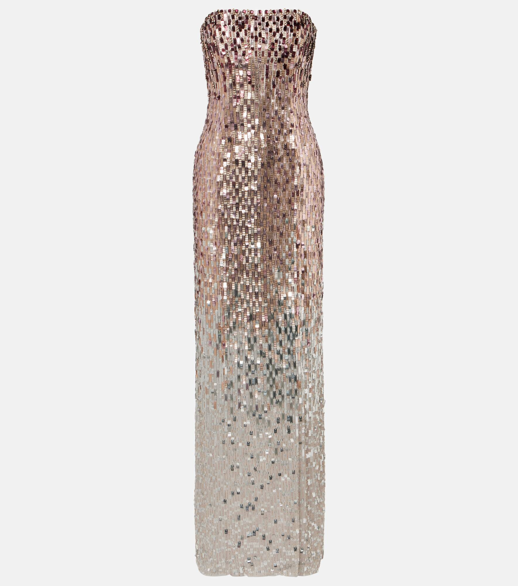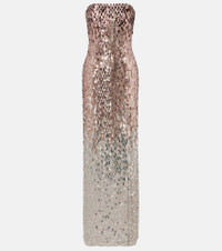 Enriched with romance, Jenny Packham’s intricately embellished designs are made to make an entrance. The Lucille gown has a strapless, fitting silhouette and is fully sequined. The design is finished with a concealed zipper. Product Details - Material: 100% nylon - Care instructions: dry clean - Made in India - Designer color name: Ammonite - Item color: gold - Lining: 95% polyester, 5% elastane - Closure: concealed zipper, zipped back, hook-fastening back - Boning - Long vent - Item number: P01048221 Size & Fit - True to size - Strapless - Internal boned corset for support - Fitted - Non-stretchy fabric - The model seen in the picture is 178cm-5'10" and wearing a size UK 8