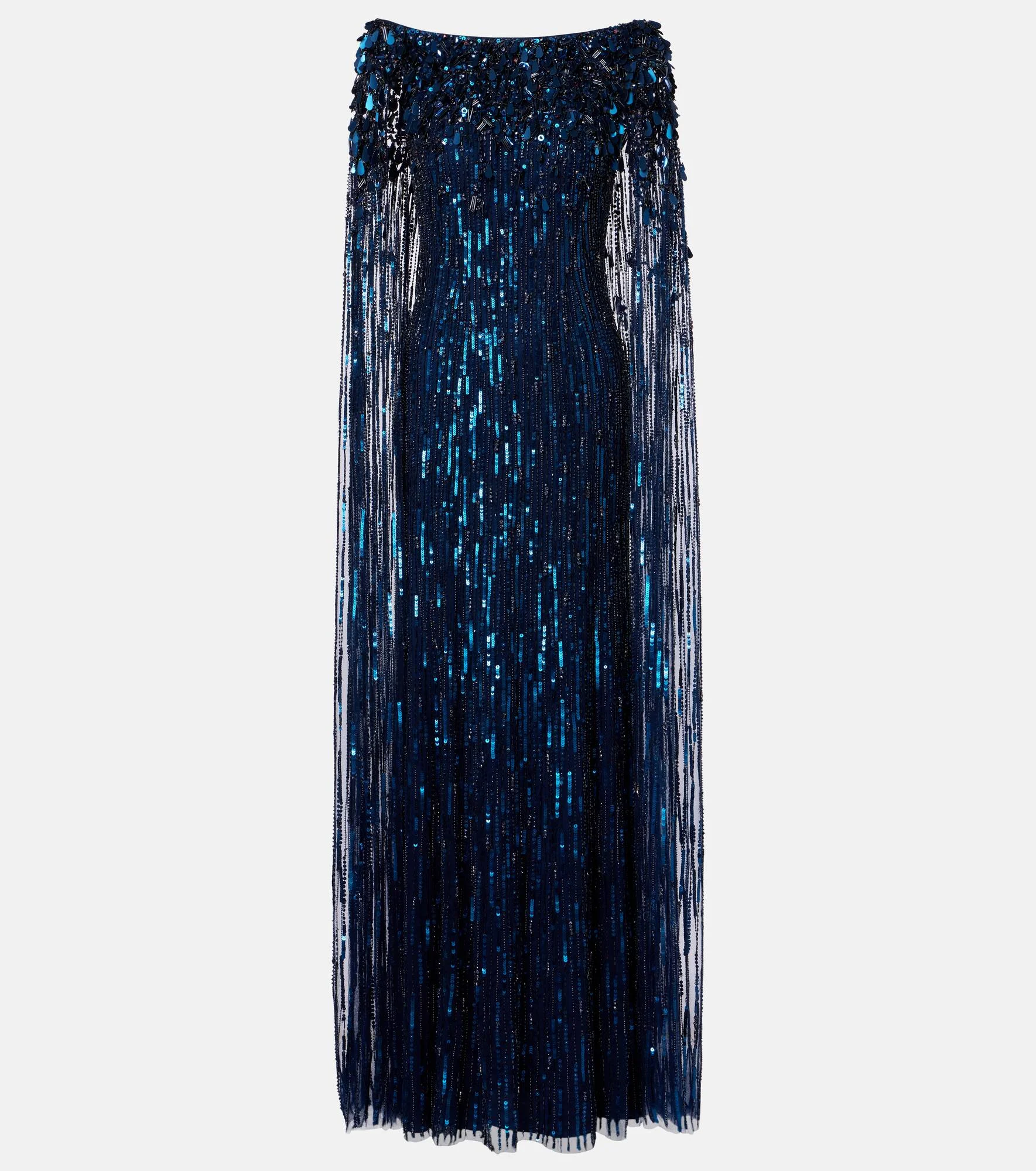Enriched with romance, Jenny Packham’s intricately embellished designs are made to make an entrance. The Luella gown features long fringe detailing on the sleeves, and the whole piece is covered in sequin embellishments. Product Details - Material: 100% nylon - Care instructions: dry clean - Made in India - Color: blue - Designer color name: Midnight Kiss - Item color: blue - Lining: 100% polyester - Closure: concealed zipped back - Item number: P01117620 Size & Fit - True to size - Fitted - Loose outer layer - Non-stretchy fabric - The model seen in the picture is 178cm-5'10" and wearing a size UK 8