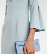Enriched with romance, Jenny Packham’s intricately embellished designs are made to make an entrance. The Margot gown is shaped into a structured silhouette with flared sleeves and is adorned with crystal embellishments at the neckline. Product Details - Material: 92% polyester, 8% polyurethane - Care instructions: specialist clean - Made in China - Designer color name: Porcelain - Item color: blue - Trim: 100% crystals - Lining: 100% polyester - Closure: zipped back - Sleeves: ¾ length - Item number: P01048216 Size & Fit - True to size - Shoulder pad inserts - Cinched waist - Slightly stretchy fabric - The model seen in the picture is 178cm-5'10" and wearing a size UK 8
