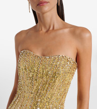 Sarai strapless sequined tulle gown Gold