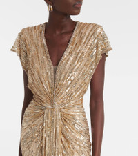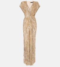 Zola draped embellished tulle gown Gold
