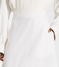 Jil Sander's sophisticated minimalism is characterized by neutral tones, clean lines, and precisely-placed details. This midi skirt is cut from white linen into an asymmetric silhouette for a modern appeal. Product Details - Material: 100% linen - Care instructions: dry clean - Made in Italy - Designer color name: White - Item color: white - Closure: zipped side - Pockets: side slit pockets - Item number: P01045483 Size & Fit - True to size - Non-stretchy fabric - The model seen in the picture is 178cm-5'10" and wearing a size DE 34