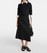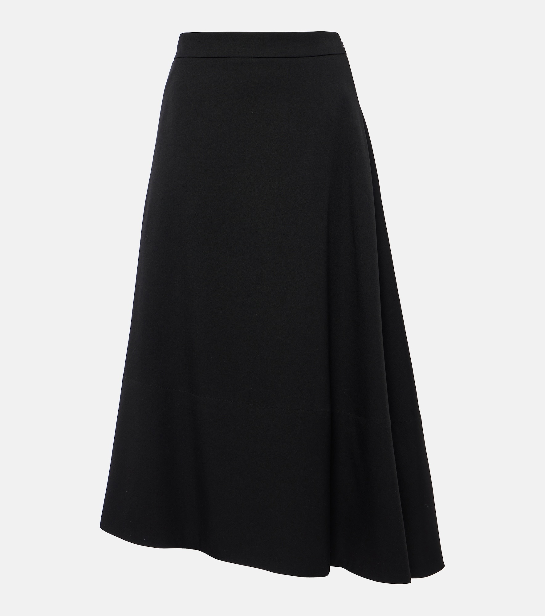 Asymmetric virgin wool midi skirt