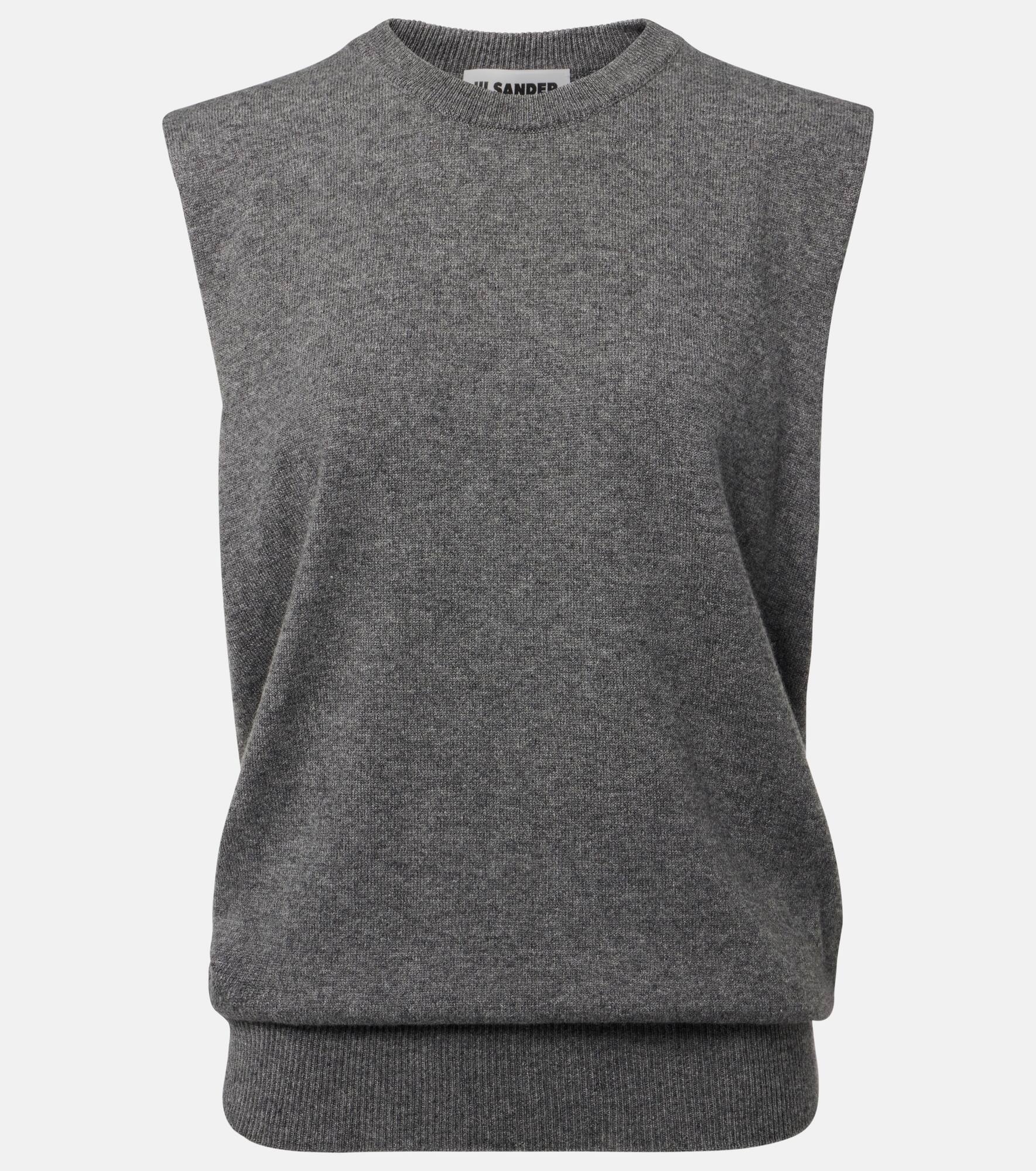 Jil Sander's sophisticated minimalism is characterized by neutral tones, clean lines, and precisely-placed details. Expertly knit from pure cashmere, this luxurious sweater vest is shaped into a relaxed silhouette with a ribbed hem. Product Details - Material: 100% cashmere - Care instructions: dry clean - Made in Italy - Designer color name: Medium Grey - Item color: gray - Item number: P01045488 Size & Fit - True to size - Straight fit - Slightly stretchy fabric - Falls to the hip - The model seen in the picture is 178cm-5'10" and wearing a size DE 34