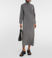 Jil Sander's sophisticated minimalism is characterized by neutral tones, clean lines, and precisely-placed details. This turtleneck midi dress is made from soft cashmere with fine ribbed-knit trims. Product Details - Material: 100% cashmere - Care instructions: dry clean - Made in Italy - Designer color name: Medium Grey - Item number: P00827762 Size & Fit - Fits large to size - we recommend trying one size smaller - Designed for a loose fit - Mid-weight material - DT = German size - The model seen in the picture is 178cm-5'10" and wearing a size DT 32