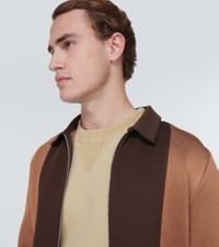 Jil Sander's sophisticated minimalism is characterized by neutral tones, clean lines, and precisely-placed details. This jacket has a retro-inspired colorblock construction and is shaped with a point collar, front zip placket, and a lined interior. Product Details - Made in Italy - Material: 57% viscose, 2% elastane, 34% polyester, 7% polyamide - Lining: partially lined, 100% viscose - Designer color name: Brown Overflown - Care instructions: dry clean - Closure: zipped front - Item number: P00734497 Size & Fit - True to size - Straight fit - Mid-weight material - Falls to the hip - The model in the picture is 185cm-6'1" and wearing a size IT 48