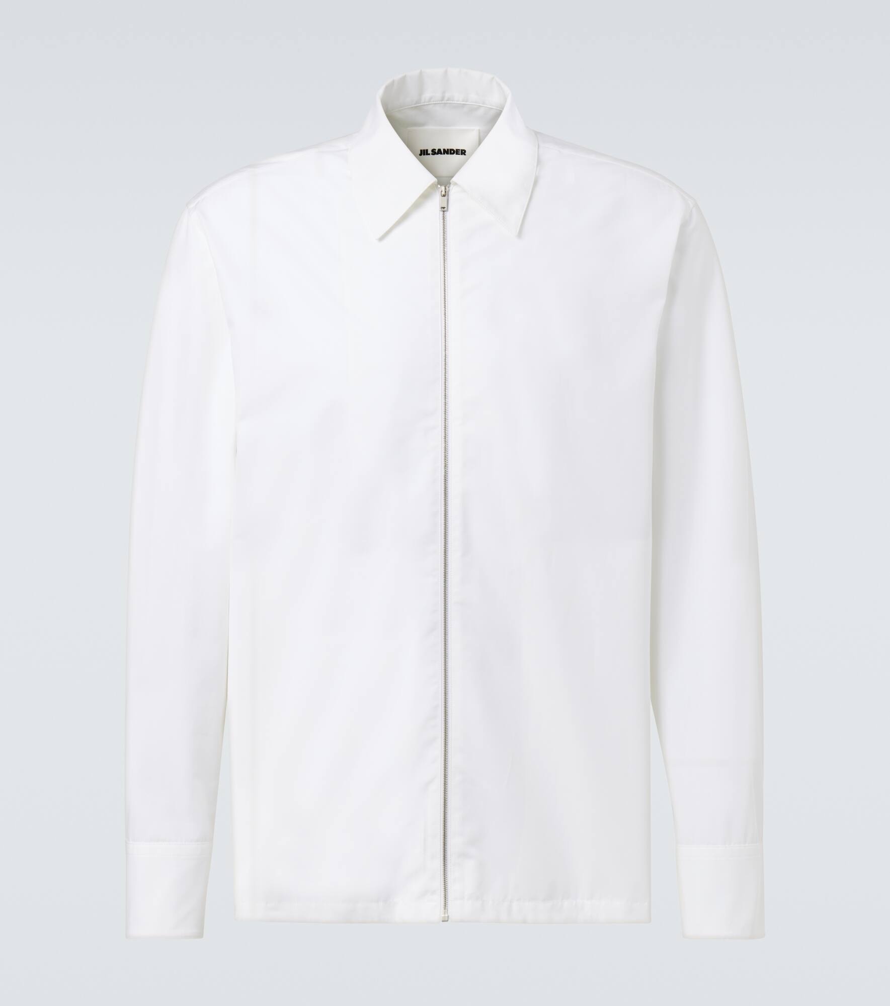 Crafted from pure cotton, this jacket from Jil Sander showcases the brand’s signature minimalist aesthetic. Crafted in Italy, its design features a classic collar, two side slit pockets, and a front zip fastening. Product Details - Material: 100% cotton - Care instructions: dry clean - Made in Italy - Designer color name: Optic White - Item color: white - Lining: 100% cotton - Closure: zipped front - Pockets: side slit pockets - Contains non-textile parts of animal origin - Cuff: one button - Item number: P01043351 Size & Fit - True to size - Dropped shoulders - Designed for a loose fit - Non-stretchy fabric - Falls below the hip - Height of model is 192cm-75.5" and wears a size IT 50