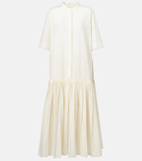 Jil Sander's sophisticated minimalism is characterized by neutral tones, clean lines, and precisely-placed details. This maxi dress is made from cotton poplin and features button fastenings and a gently flared skirt. Product Details - Material: 100% cotton - Care instructions: hand wash - Made in Italy - Designer color name: Eggshell - Item color: white - Closure: button fastening - Item number: P01005650 Size & Fit - True to size - Dropped shoulders - Designed for a loose fit - Non-stretchy fabric - The model seen in the picture is 178cm-5'10" and wearing a size DE 34