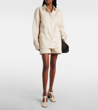 Jil Sander's sophisticated minimalism is characterized by neutral tones, clean lines, and precisely-placed details. These versatile shorts are cut from a cotton and hemp denim and finished with a logo-debossed leather patch. Product Details - Material: 87% cotton, 13% hemp - Care instructions: hand wash - Made in Japan - Designer color name: Canvas Beige - Item color: beige - Belt loops - Trim: 100% leather - Pockets: side slit pockets, back pockets - Pocket lining: 100% cotton - Contains non-textile parts of animal origin - Item number: P01005664 Size & Fit - True to size - Non-stretchy fabric - Wide-leg - High-rise - The model seen in the picture is 178cm-5'10" and wearing a size 26