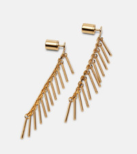 Jil Sander's sophisticated minimalism is characterized by neutral tones, clean lines, and precisely-placed details. These drop earrings are made in Italy from gold-toned brass and show Jil Sander's slightly more playful side. Product Details - Material: brass - Made in Italy - Item color: gold - Includes: box, dust bag - Item number: P01064564 Size & Fit - Length 7cm-3" - Width 0,5cm-0"
